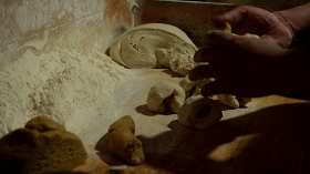 从大盆里取出一坨面