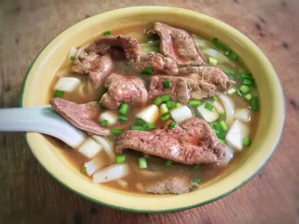浓稠的濑粉没有多余奢侈的用料,虾米、冬菇、鱼皮碎、萝卜干等配料做出。濑粉浓稠米浆适中,粉条软糯而且带有一点韧性,有米香味。濑粉搭配有虾米冬菇猪油渣大头冲菜等,就是小时候的味道,好正。