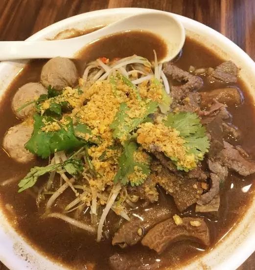 泰国貴刁,贵刁其实有点像潮汕的粿条,但是搭配老板推荐的酱料吃法会和沙茶酱不一样。推荐全牛贵刁跟牛杂贵刁,这里的汤很浓郁,配料还是蛮足的。