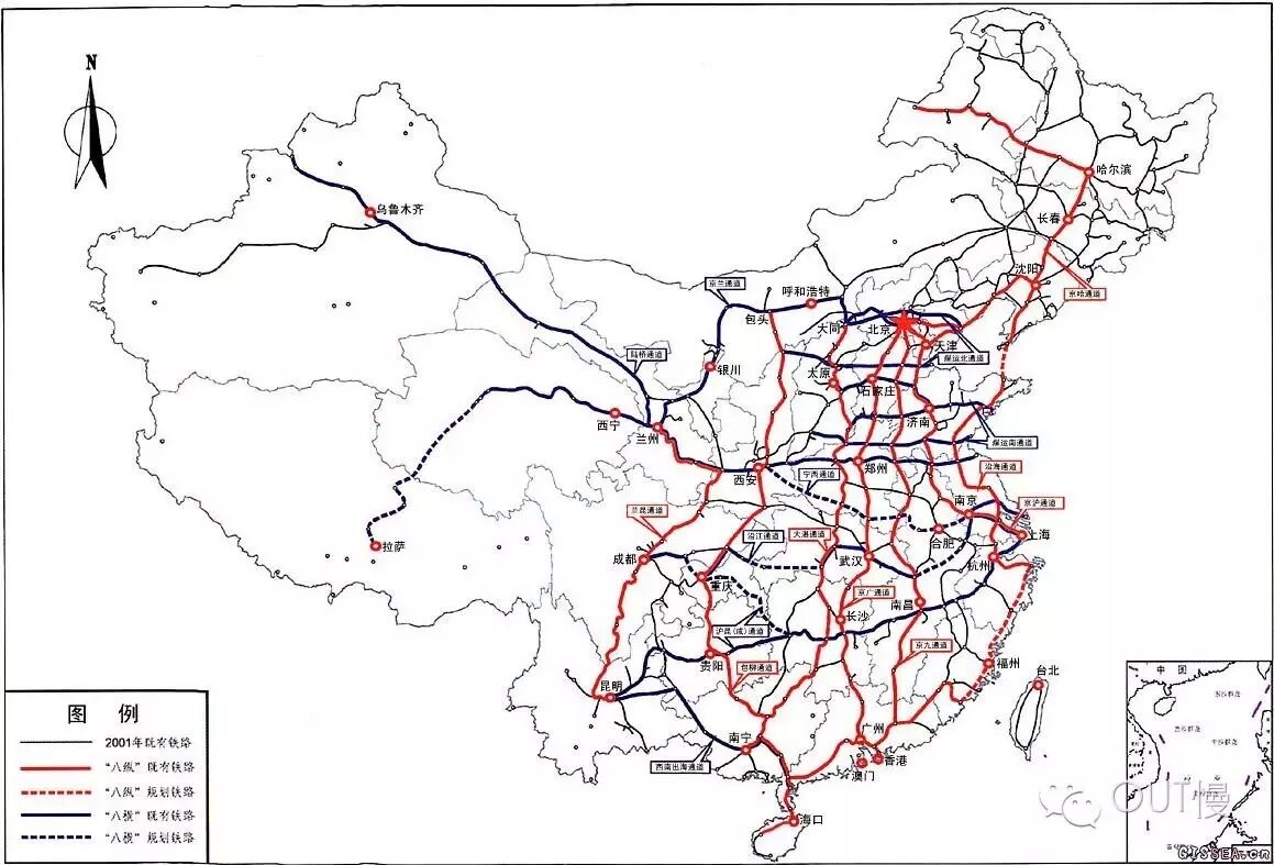 “八纵”:沿海通道、京沪通道、京港(台)通道、京哈-京港澳通道、呼南通道、京昆通道、包(银)海通道、兰(西)广通道。