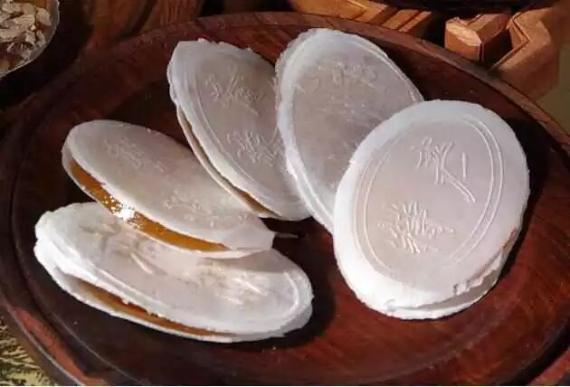 7、北京茯苓饼,因为滋补性强,而且据说当时慈禧太后喜欢吃,所以身价不菲,但大家都感觉像在吃纸,凡到北京的外地人,大都要到王府井买几盒带回去,以馈赠亲友。