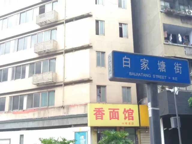 一般来说你气喘吁吁的攀上K出口那长长长长的楼梯之后,迎接你的是一双双热情的双手,“摩的摩的,走不走?”不要说话,不要露出任何表情,特别是眼神接触,不然马上有更多的摩的大叔围过来好么。之后你会看到这个路牌,对的,白家塘街,麻烦你默默记住,因为后面源叔还有话说。