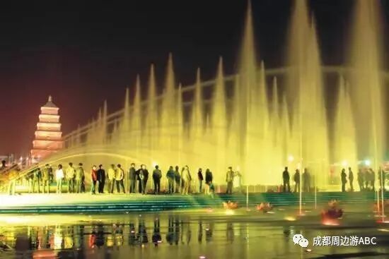大雁塔是古都西安的象征,但除了古色古香的韵味外,它还有浪漫的音乐喷泉。每到晚上8点,北广场上的音乐喷泉便会喷出梦幻的彩色光波,绚丽而迷人的景象令人陶醉。