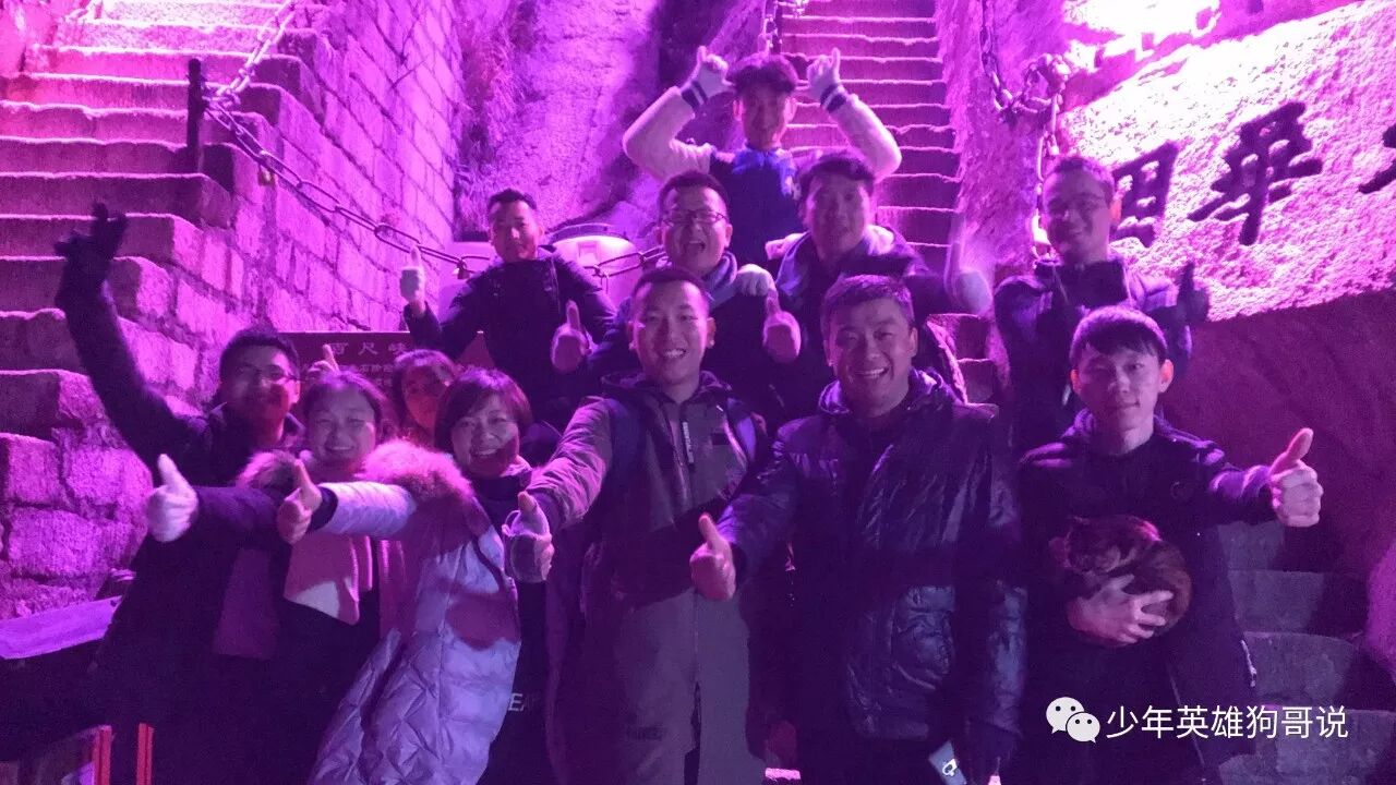 1. 狗哥为什么要大晚上一个人爬华山——因为迷笛背包哥亿渠先生对华山大力赞美,狗哥是一个好奇心非常强且热爱自由的人,恰好12月7日是狗哥21岁生日,太过忙碌错过了20岁生日的狗哥,突然决定送自己一个超级特别的生日礼物,马上各种订票准备,提前超额完成了各种工作,背着对外汉语的一本书爬到了华山之巅(瘦弱的狗哥背着最重的包,心疼狗哥一万秒),看来狗哥真的对学习爱得深沉( 邢台一哥说“别嘚瑟了,我也带了一本《明朝那些事》”,嗯,果然我们邢台人都不一样。)