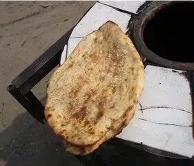 火烧熟了之后老板就不会用手去取了,而是用一种特别的钳子,跟给煤炉换煤的钳子类似但是更长更扁,为了契合炉内的角度它的前端是弯曲的。师父头朝后稍稍后仰,看着火烧判断出哪个是熟的然后用钳子钳住一端轻轻一掀就取出来了。再根据客人的要求吃甜的撒上糖,吃咸的撒上盐,然后拿袋子一装就完成了。