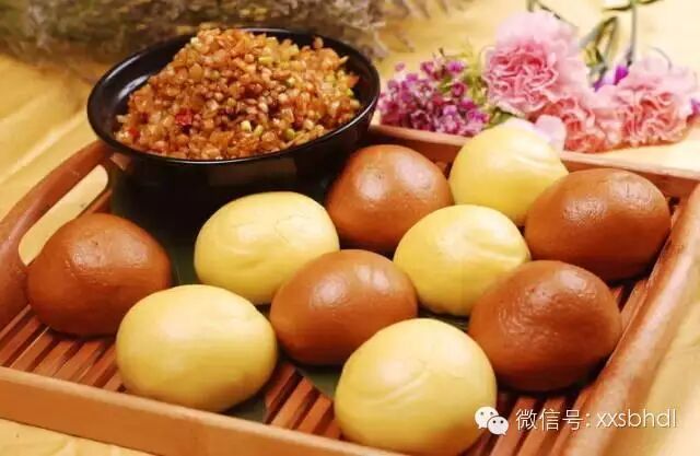 河南还有一种馍叫“菜蟒”,既非实心馍,也非有馅的包子馍,制法简单又好吃。它是将发酵的面揉匀,擀成一张大圆片,上摊韭菜或红萝卜等馅料,从一边卷起,不用刀切,盘放在笼上,蒸熟后形如蟒蛇,用刀切成方块食用。此馍面、馅不分,馍菜一块吃,故咸淡适中,清香可口。