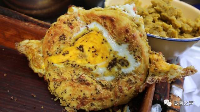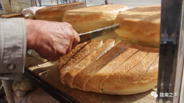 在西和的大街小巷,人们随处都能发现摆摊卖锅盔的身影。这种“锅盔”厚8-10厘米,有5斤多重,表面黄而不焦,直径尺许。切开一看,中心呈现出海绵状,每一个小孔都发出诱人的香味。锅盔表层较厚,吃锅盔皮还别有风味,它干而柔,越咀嚼越有滋味。