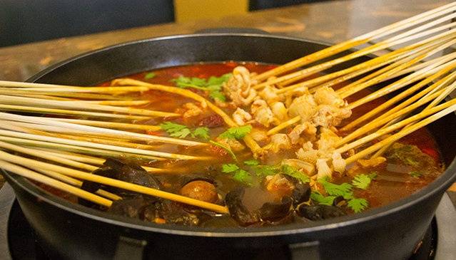 美食夜市上最热闹的地方,无疑是各类吆喝着叫卖的烤串儿摊子。西安烤串儿不同一般之处在于个头儿是其他地方烤串儿的两到三倍,伴随着不断的“孜孜”声和一阵阵扬起的香料的气味,光亮的油脂要么流向烤串儿的串儿尖,要么就是“刺啦”一声滴进炭火里,激起一阵散发着异香的油烟。高矮胖瘦的吃客手中,都拿着两三串烤成酥黄的烤串儿大快朵颐。而在手肘子长的铁钎儿的激励下,似乎人人的性格都变得豪爽起来。 ![]()