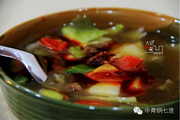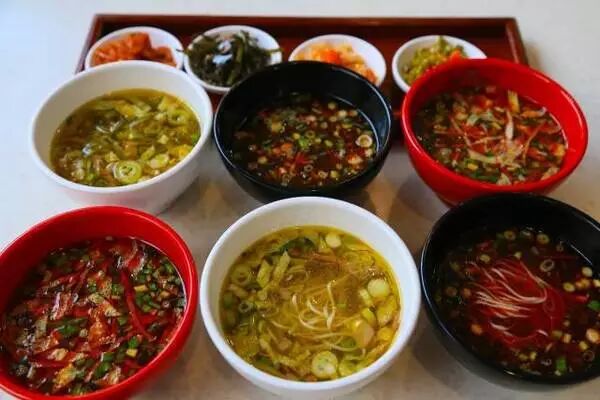 特点“煎稀香、薄筋光、不会汤”的扶风一口香。少油、少盐、以鸡汤打底,漂菜丰富是其最明显的特点。
