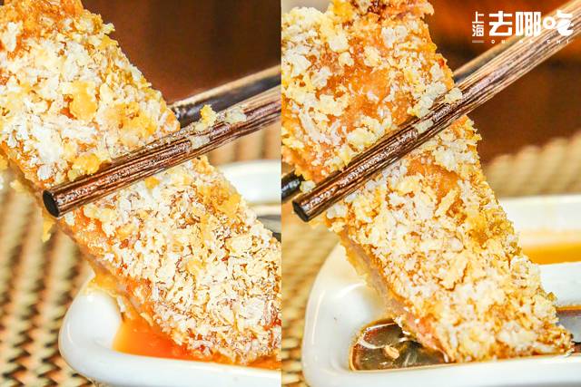 外壳的面包糠粒粒分明,嚼起来酥酥脆脆,还能听见“咔呲咔呲”声,边吃边掉渣!