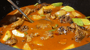 用原始灶台,特制炭火烧炖的土鸡,更好地激发出了肉的香味,大火的均匀加热,鸡肉不停出油,加上调料和配菜,好大的一锅,端上来的时候被香味已经撩的按捺不住了。