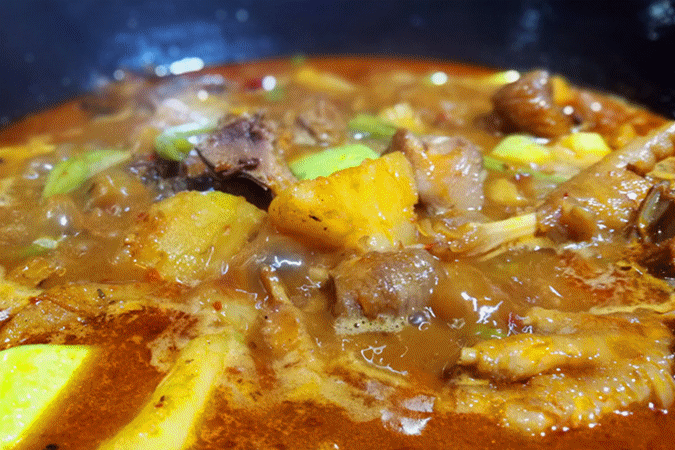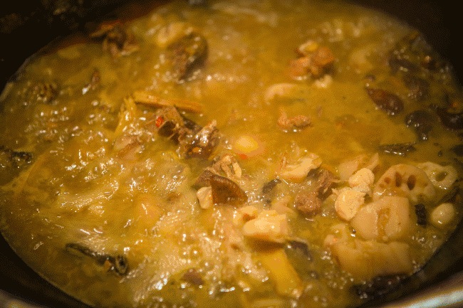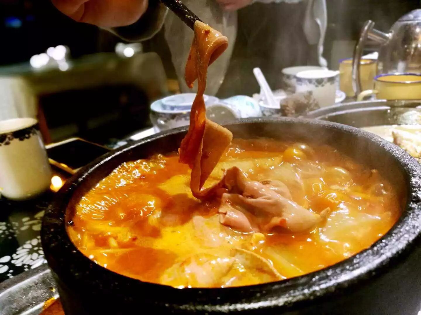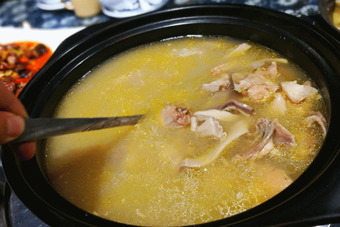 满满的一锅全是肉啊!猪肚和鸡肉在咕嘟咕嘟的的汤底翻滚,随意一捞,都是满满的硬货。