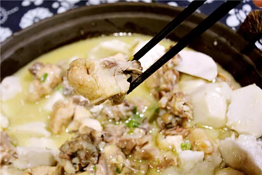 如果说之前几道菜都是尽显霸道的重口味,那这盘芋儿鸡展现的就是另一番的温柔。长时间熬制的鸡汤没有多余的调料,一口下去只有鲜香。