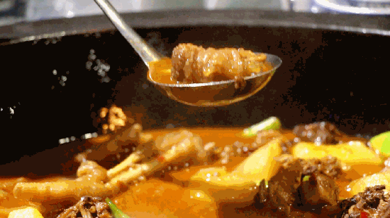 夹一大块鸡肉,口感结实,超有嚼劲。浓郁的汤汁已经将土豆炖的软绵香糯,在嘴里自然化开。还有豆角和西葫芦,每一种都结合了鸡汤底的浓郁香味,一块一块停不下来。剩下的浓香汤底还可涮菜或者下面,继续把瘾过足!