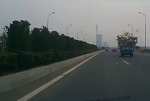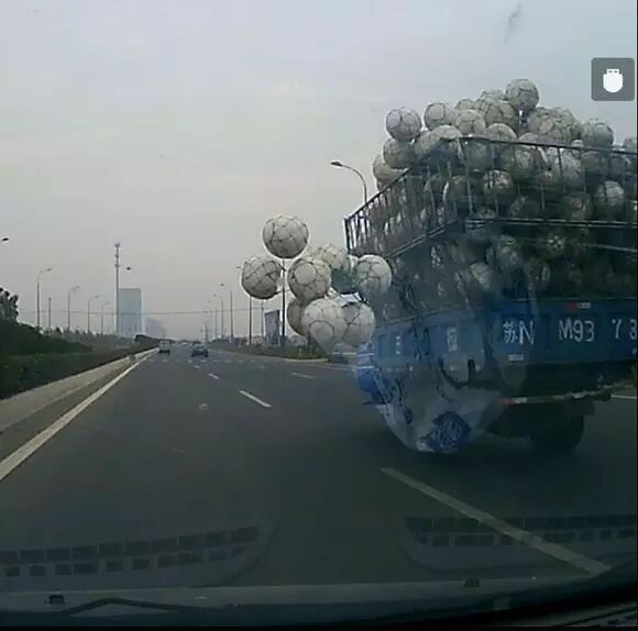 网友爆料:今天其开车行驶在柘汪沿海公路,突然迎面遭遇大量泡沫球砸中,竟是前方货车上面的货物由于捆绑松弛,导致泡沫球直接从车厢飞出,砸中他的车辆!