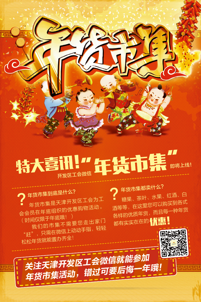 现天津开发区工会年货市集即将上线,我们不仅有汤圆,我们还有糖果、橄榄油、红酒、啤酒、白酒、红枣、茶叶等等,更是以前所未有的低价为您奉上!还在等什么,赶快随时关注吧!这次错过可是要再等一年的哦!