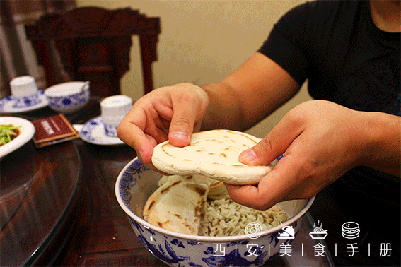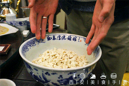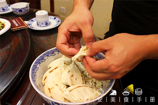 光是馍做得好还不够,如果碰上不会掰馍的食客一样白瞎!地道的老陕掰馍讲究四个字:掰、撕、掐、抖!