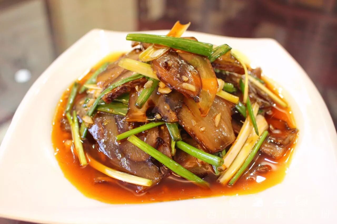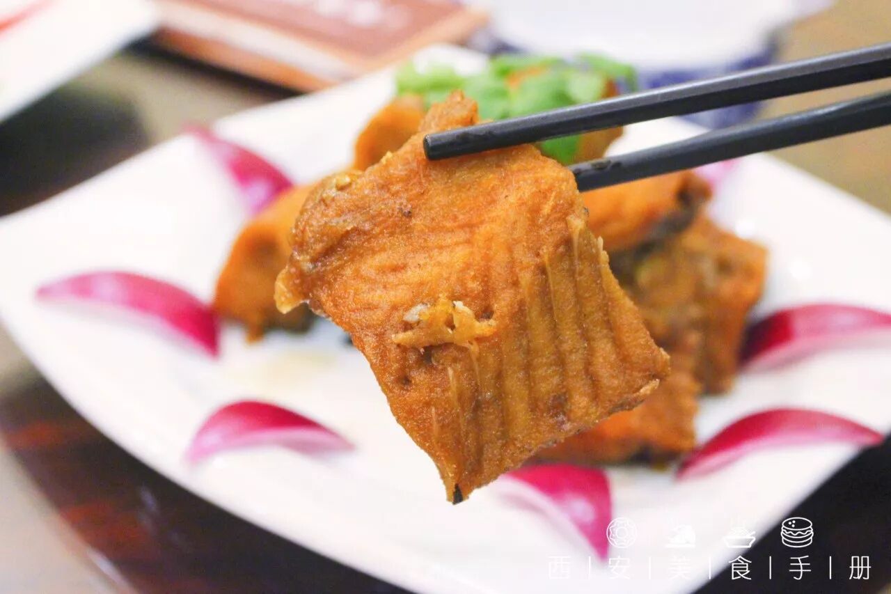 这道五香熏鱼的制作工序非常繁琐,需要 5-6 个小时才能完成。鱼肉口感细嫩酥软入味,咸香中带有一丝回甘,在等待泡馍时作为前菜非常的解馋。
