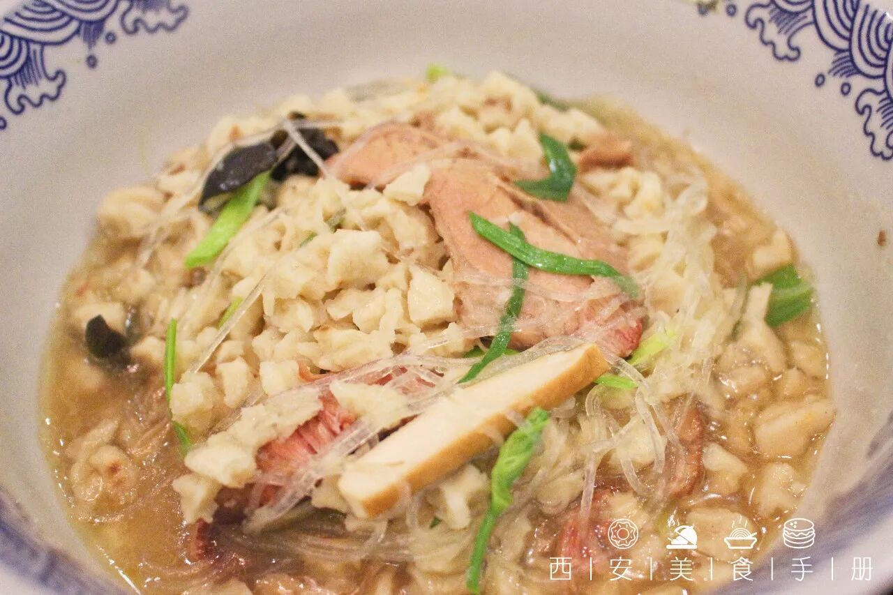 爱吃君要了最传统也是最经典的吃法,口汤。吃的时候,切记不能刨着吃,不能搅拌,一定得顺着碗边一点点扒拉着吃,老陕把这叫 “蚕食”!