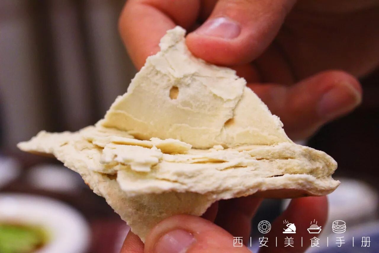 掰开西泰厚的馍,可以明显看到 6 道分层,这样品质的馍,能够充分吸收美味的羊汤,将麦子的自然香气和肉汤的浓香结合,滋味甜美~