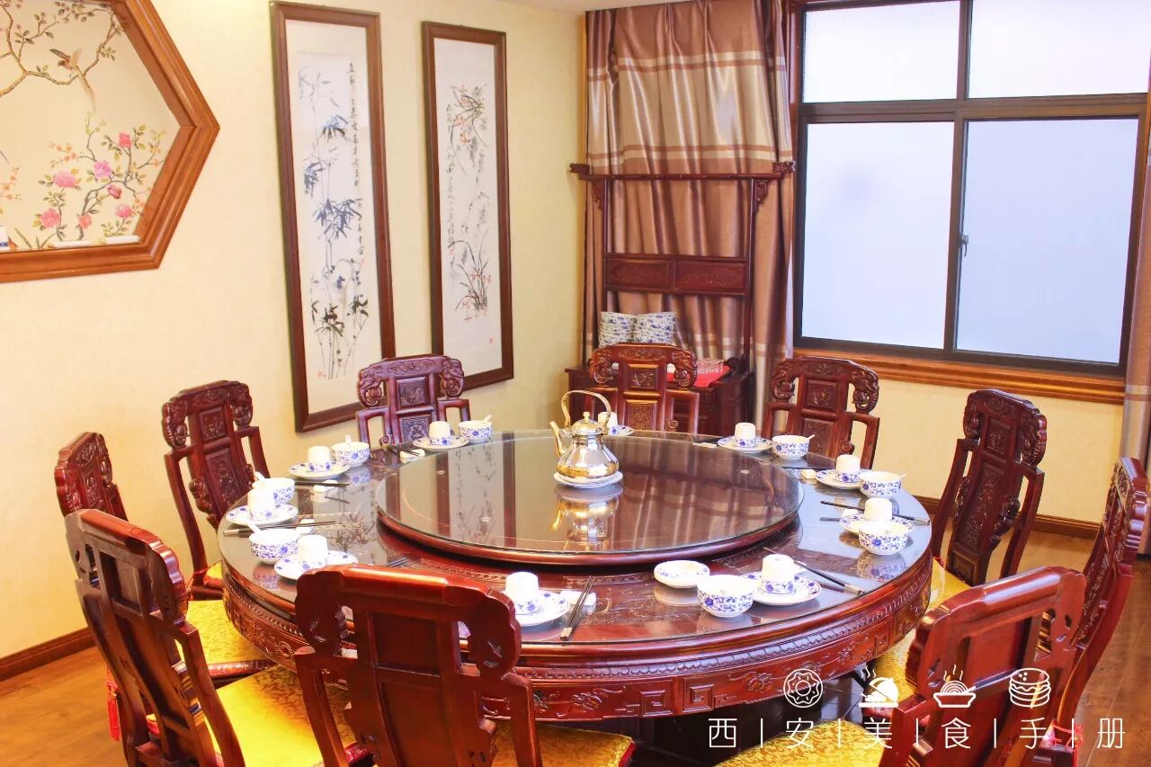 上了二楼,就是西泰厚的四个包间:分别为西华府、泰和院、厚德厅、高朋堂。每个包间里都少不了韵味十足的字画装饰和红木家具,文化感十足!