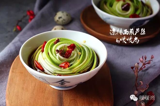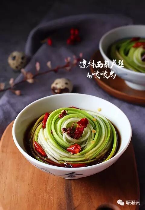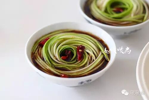 曾经,我的一个朋友和我说,她做饭时不经意的拿了一块刚切好的茄子放嘴里,然后她老公就跟见了怪物一般大叫:“你竟然生吃茄子?”一脸的不可思议。我第一次看到凉拌西葫芦这道菜时也是同样的反应,想到朋友的那个梗便欣然接受了。讲真的,温润如玉的西葫芦丝配上红油汁看上去真的特别能勾起人的食欲,尝一口,西葫芦丝清甜脆爽,酱汁咸鲜为主,但同时兼具一丝的酸甜,还有干辣椒被热油浇过后特有的焦香气,味觉层次特别丰富。当下,我便决定我要回家山寨之!