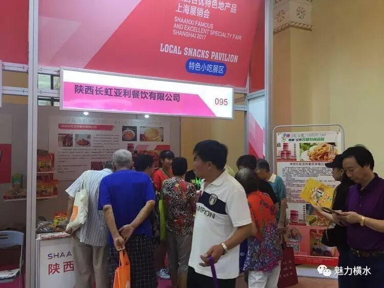 这是2017陕西名优特色地产品上海展销会上的场景掠影,亚利见别的展销台产品都可以现场品尝,而自家的面皮不能过夜,所以带的是真空包装的,蒸了才能吃,亚利顿生一计,花了500块钱去超市买了蒸锅,就有了后来的热闹场面。