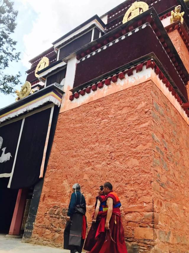寺院的外围有一圈转经筒,也是世界上最长的转经筒廊,全长3.5公里。一排排厚重的转经筒被整齐的安放于木轴上,一眼望去,壮观又神秘。虔诚的人们,佝偻着背,蹒跚的走在悠长的走廊上,左手转动佛珠,右手触碰转经筒,诵经祈福。“那一世,我转山转水转佛塔啊,不为修来生,只为途中与你相见。”