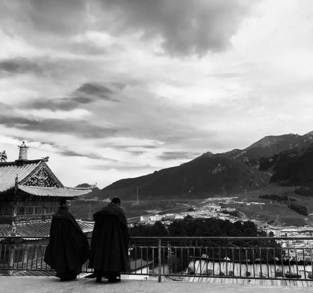 站在桥下仰视对面的山麓,整个拉卜楞寺都一览无余。拉卜楞寺是藏传格鲁派寺院之一,是甘南地区最大的佛学院,被誉为“世界藏学府”。县城里有一条宽阔的马路,左边是寺庙佛堂,右边是街道店铺。修行往左,红尘往右。然而佛国与尘世并无明显的界限,无论往左还是往右,都可以和谐相处。