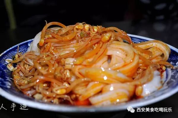 夏天老陕们的心头第一爱,吃起来冰冰凉凉,配上调的酸酸的醋汁和辣子油,还有一种吃法是炒凉粉,可以说也是非常美味了。