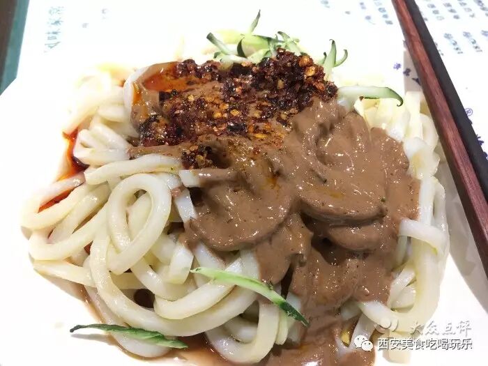 很多人会把凉皮和酿皮混为一谈,最大的区别在于凉皮是洗过面筋的面水蒸出来的,酿皮是不需要洗面筋,直接面粉和水上笼蒸透。酿皮柔中带筋,清香亮黄,辣子焦香,一端上来就能闻到浓浓的芝麻酱香,十足开胃。