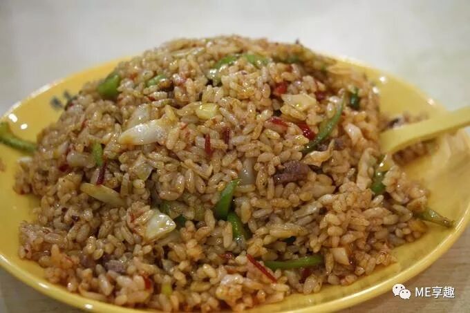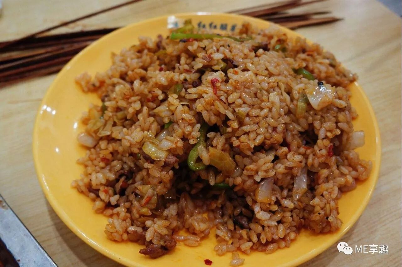 酸菜炒米其实是炒饭,炒米是当地人的统一叫法。米饭可以与肉丝、蔬菜、鸡蛋等搭配,但最常见也是最招牌的是用酸菜肉丝炒制,即为俗称的“酸菜炒米”。炒米混合了酸菜的酸、油的香,吃起来酸酸辣辣,香而不腻,米饭不粘连,口感清爽。配上涮牛肚、烤肉、酸梅汤、鸡蛋汤等一起吃,更有一番风味。