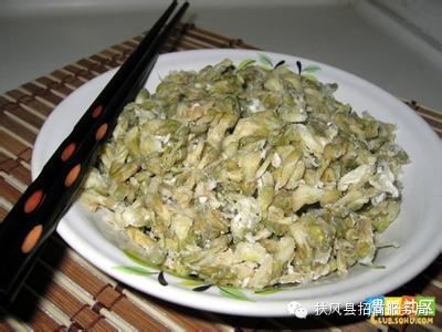 麦饭是陕西特色的一种小吃,是用各种菜蔬和以干面粉,蒸而食之。大抵以野菜为最好。最有名的是用洋槐花和苜蓿做的。在没有槐花和野菜的季节,最常用芹菜叶做。麦饭亦菜亦饭,蔬菜、花朵皆可入食。五月槐花盛开,可做槐花麦饭;榆钱丰盛的时候,做一盘榆钱麦饭也是非常的香甜滴。到了夏季,茄子,土豆,香芹……好多蔬菜都可以用来做这个简单而又喷喷香的乡土小吃。