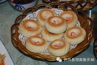 鹿羔馍形状是圆形、中间有小旋窝、内印有红色鹿羔图案,故名鹿羔馍,是扶风县具有特色的风味食品。它用精粉、清油、白糖制成。具有食用酥香可口、耐贮存的特点,是旅游生活、探亲访友的佳品。