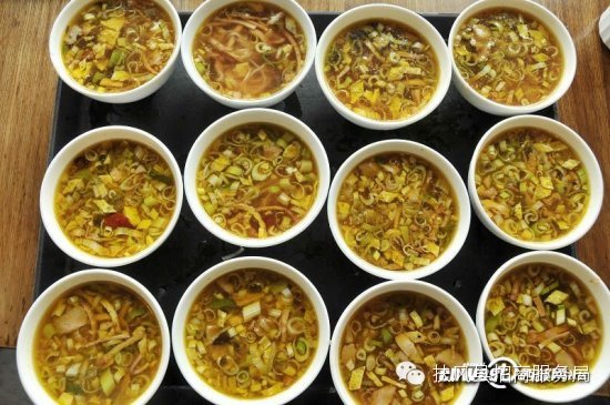 羊肉泡馍,古称"羊羹",宋代著名诗人苏轼有"陇馔有熊腊,秦烹唯羊羹"的诗句。羊肉泡馍的烹饪技术要求很严,煮肉的工艺也特别讲究。其制作方法是:先将优质的牛羊肉洗切干净,煮时加葱、姜、花椒、八角、茴香、桂皮等佐料煮烂,汤汁备用。馍,是一种白面烤饼,烤饼的面必须是死面,吃时将其掰碎成黄豆般大小放入碗内,然后交厨师在碗里放一定量的熟肉、原汤,并配以葱末、香菜、黄花菜、黑木耳、料酒、粉丝、盐、味精等调料,单勺制作而成。牛羊肉泡馍的吃法也很独特,有羊肉烩汤(水盆羊肉),即顾客自吃自泡:也有干泡的,即将汤汁完全渗入馍内。吃完馍、肉,碗里的汤也被喝完了。还有一种吃法叫"水围城",即宽汤大煮,把煮熟的馍、肉放在碗中心,四周围以汤汁。这样清汤味鲜,肉烂且香,馍韧入味。如果再佐以辣酱、糖蒜,别有一番风味。是一种难得的高级滋补佳品。