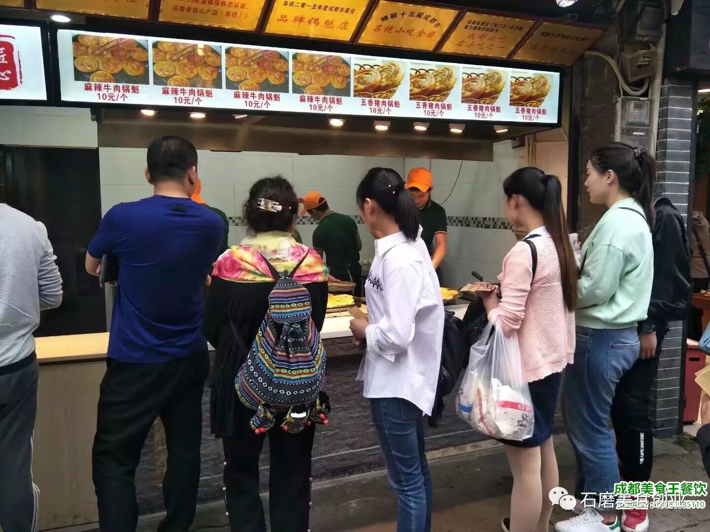 (图中的客人来自北京,专门从双流机场来卖周师傅的锅魁,可惜是最后一锅了,另一个顾客让了两个锅魁给北京客人,否则又该遗憾了。)