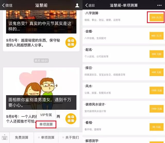 step2:选择你需要测算的项目,如:八字测算,填写完个人资料后,立即下单,付款。