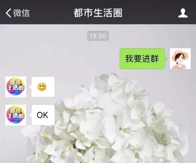 2、发送“我要进群”给都市生活圈管理员: