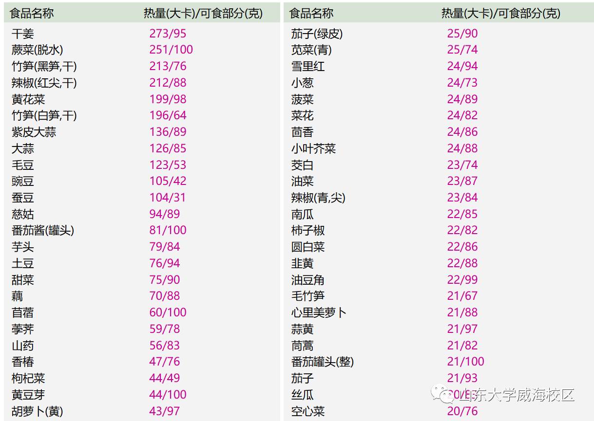 竹笋(23大卡),番茄酱(20大卡),甜菜(22大卡)