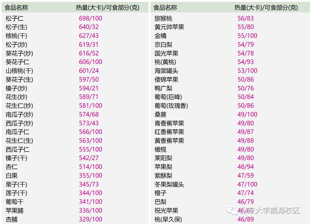 梨子(50大卡),葡萄(44大卡),柚子(42大卡)