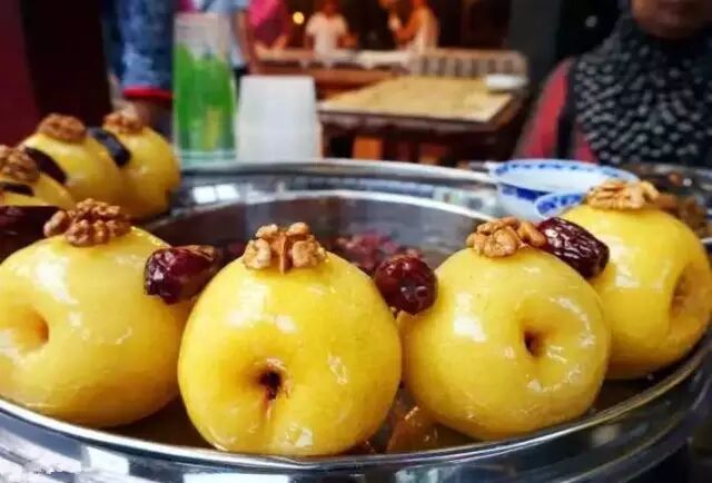 在回民街最为普遍的美食饮品源远流长,如麻酱凉皮、小炒泡馍、肉丸胡辣汤、八宝粥熬,为清真吃法,甑糕口感黏软香甜,又很饱腹;另有绿豆糕、黄桂柿子饼等自成体系,很有地方风味,很地道。图为一盘锅贴。