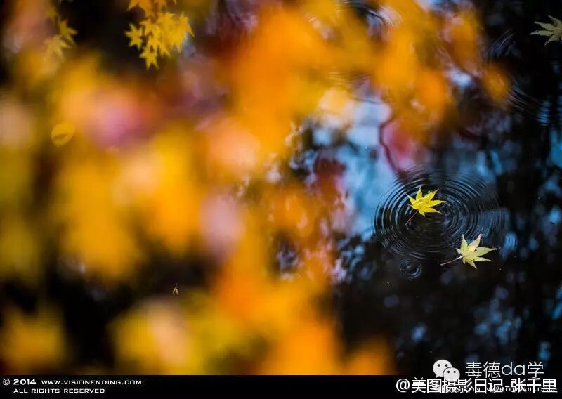 既然是雨天,雨滴当然也可以加入到画面之中。选择一个合适的构图,在雨滴打到水面上的瞬间按下快门,照片似乎也因此多了一份禅意。