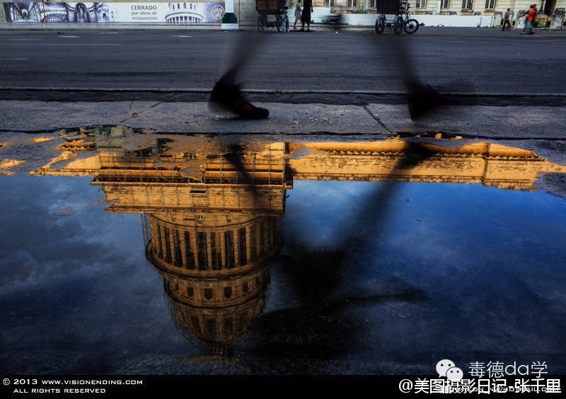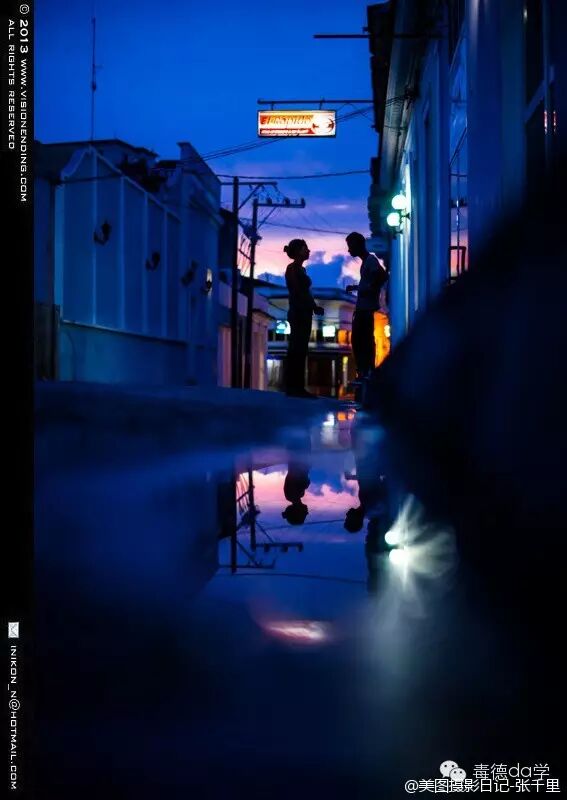 尝试寻找一下路面上有积水的地方,把水面反射的画面合理地安排到你的画面中,可以让你的照片增色不少。