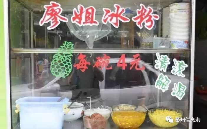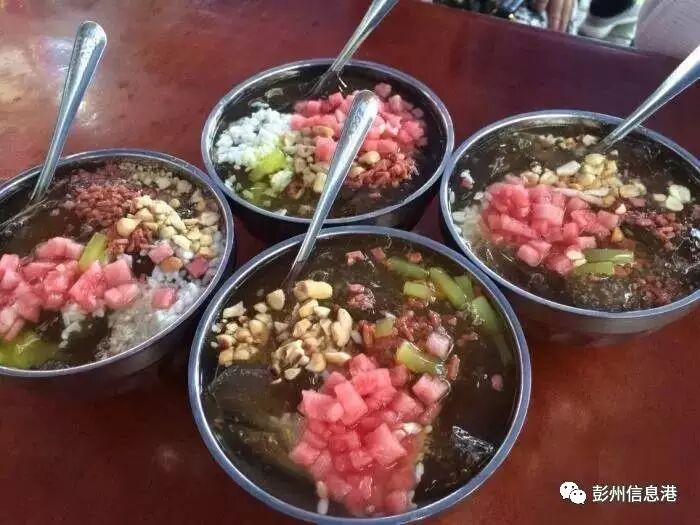 廖姐冰粉(小北街,彭州人应该都知道)名气确实很大,口味更多的保留了古早的味道、简单的调味,在夏日里有另一番味道。夏天不去吃个几十碗都不算彭州人了。