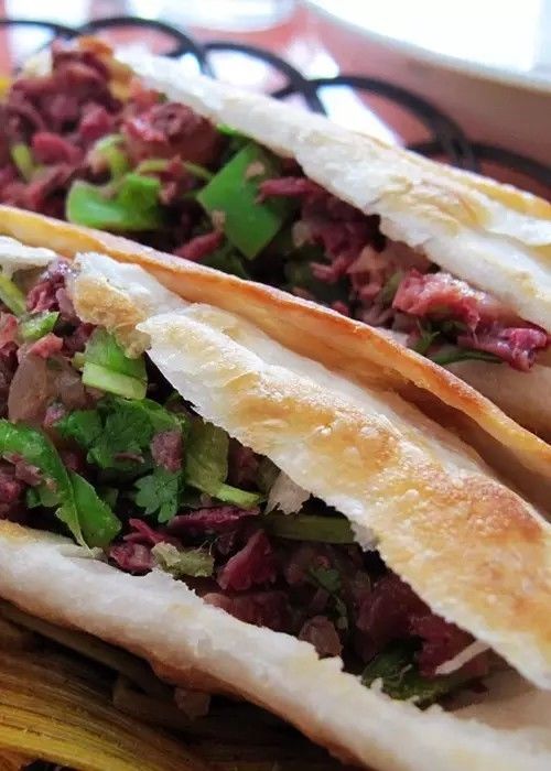 小南门一进去就能找到这家店,店面不大,五六张桌子,火烧是河间的那种方形火烧,烧饼烤热,夹上卤制的驴肉和青椒,烧饼香酥,青椒有较重的辣味,美中不足的是肉有点偏咸。