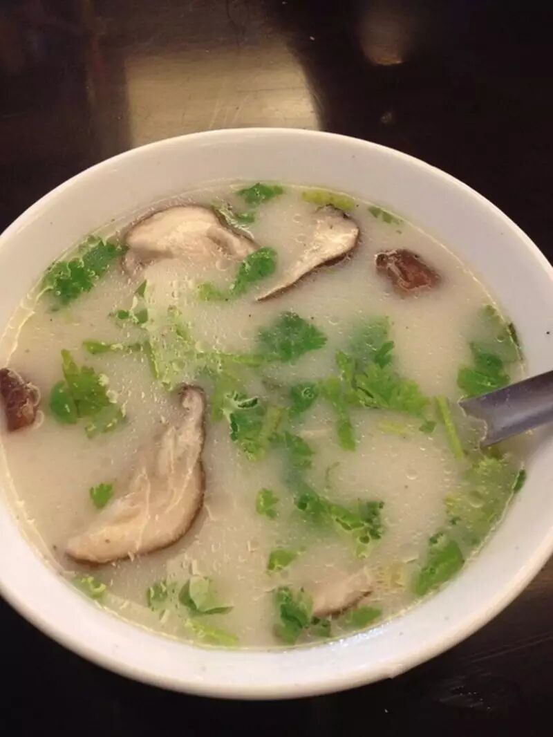 大骨汤小小的一碗,很鲜,熬到奶白的汤底看着就很有食欲,虽然里面的骨头一点都不大,不过配料什么的都看的一清二楚,香菇的提味和肉汤的鲜美完美融合。