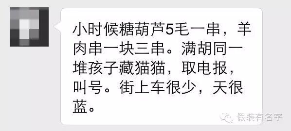 小圈:记得小时候5毛一包的小零食;记得小时候1块一串儿的糖葫芦;记得小时候2块一锅的小蛋糕;记得小时候5毛钱的大红果;记得小时候紫竹院还要门票;记得小时候邻里都会打声招呼;记得小时候玩不腻的红砖头,活儿泥巴;记得小时候只有长辫子的电车;记得小时候地铁也只有1号线和2号线;记得小时候去趟回龙观都算进村儿;记得小时候老北京还有门楼子。