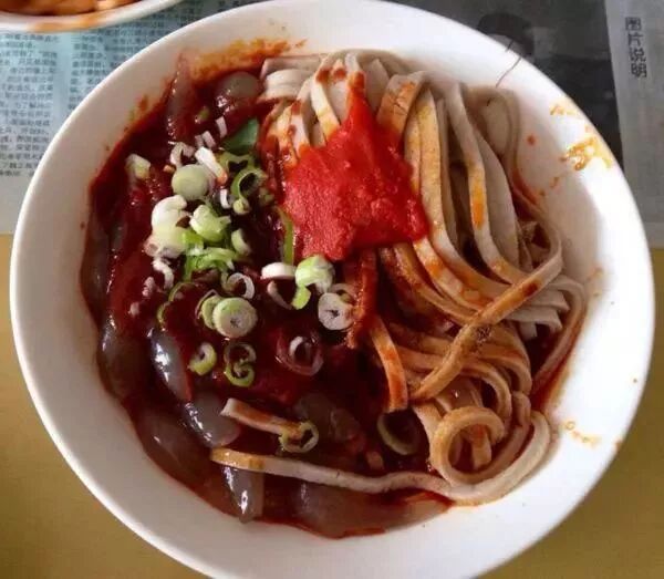 踅面是渭南地区独有的,也是当地人极为偏爱的风味小吃。这个字念“xué”,有的人写成“旋面”,是因为“旋”字在合阳方言里念“踅”。当地有句话说“不吃踅面不看线,等于没去合阳县”,可见还是很有代表性的。