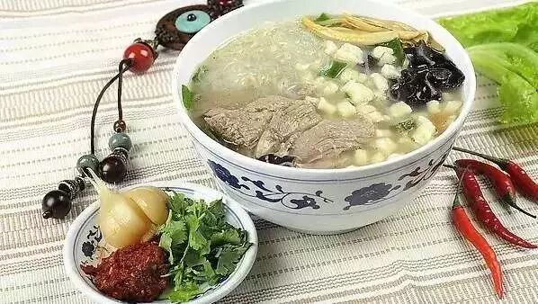 肉丸胡辣汤本是西安回族人的清真食品,现在则被当地人广泛接受作为早餐。肉丸多为牛肉丸子,辅料加白菜、土豆块、菜花、胡萝卜块、木耳、腐竹等,每种菜的软硬得当,色香味俱全。