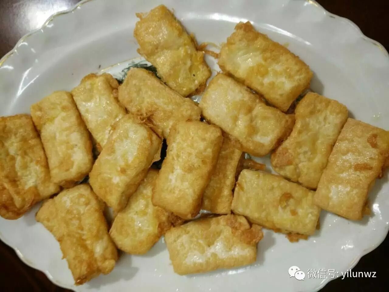 锅贴是北方小吃,跟煎饺类似。我们的“锅贴豆腐”却是没有馅儿的。即便如此,吃起来少了馅类锅贴的油腻,却仍然有锅贴一样的油炸香。